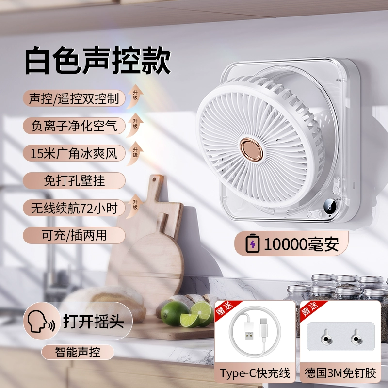 Wall-mounted fan kitchen air-conditioning special toilet bathroom dormitory wall-mounted small punch-free silent usb charging remote control fan household powerful shaking head fan office folding bedside