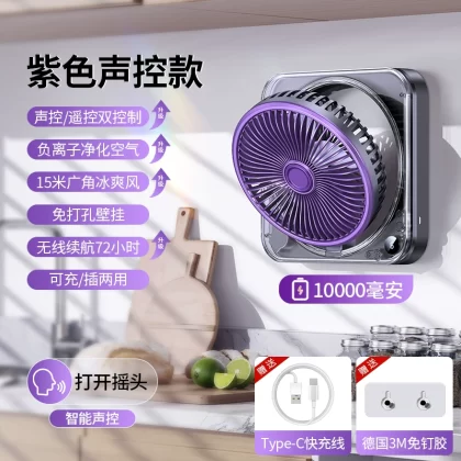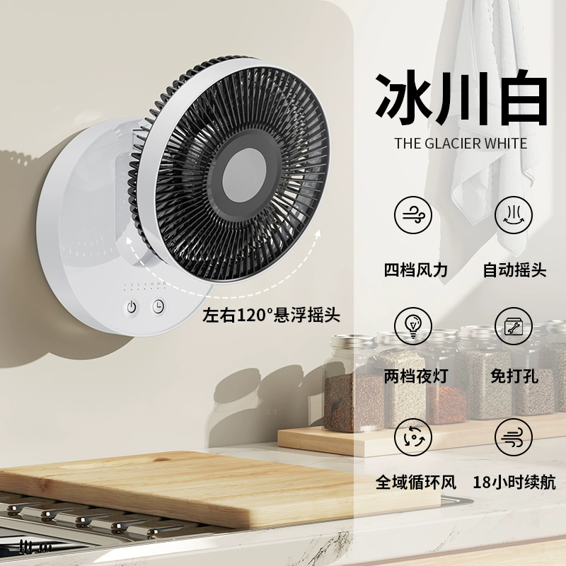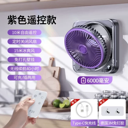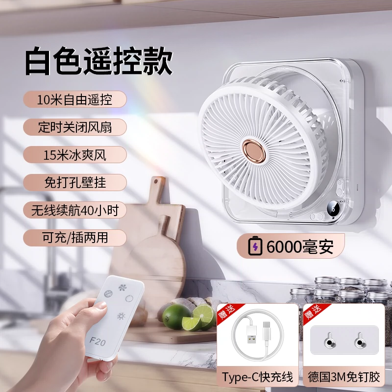 Wall -mounted fan Kitchen air -conditioning dedicated toilet dormitory Hanging wall hanging wall -free mute quiet USB charging remote fan Household strong shaking fan office folding on the bedside