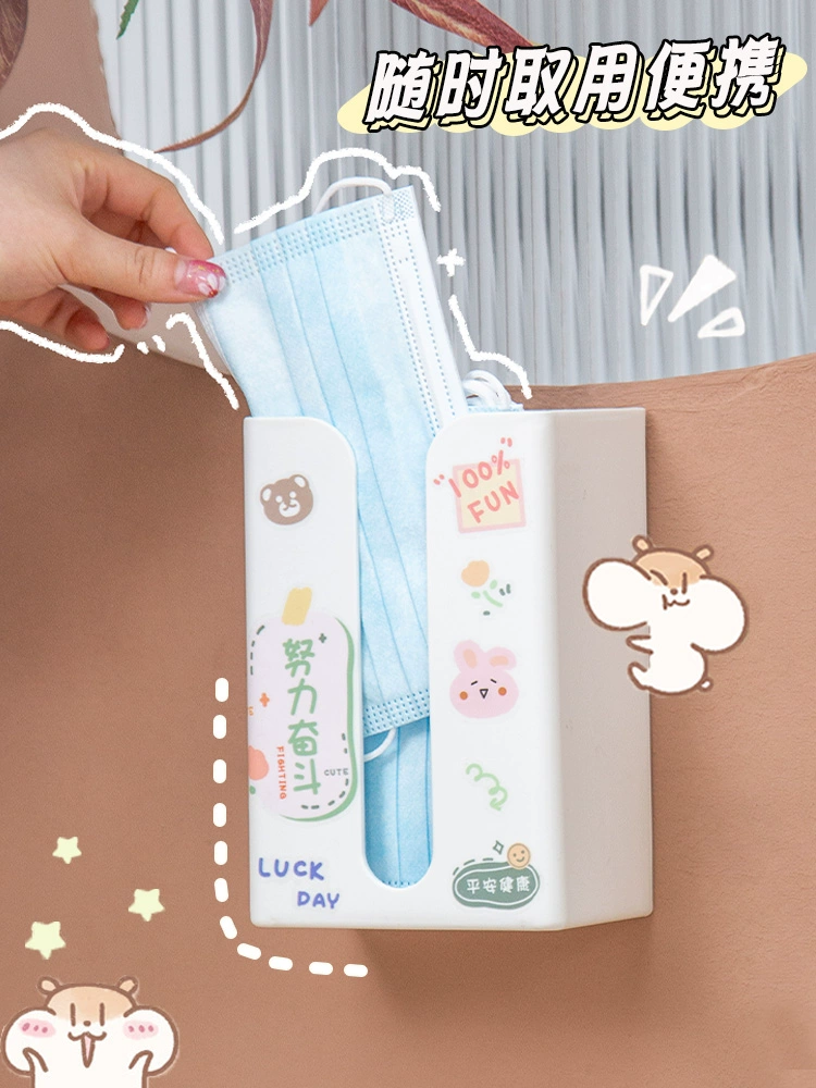 | nameOriginal | Wall-mounted mask storage box for home entrance creative student dormitory cute ins style punch-free tissue box |