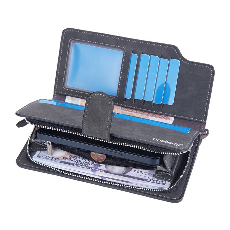 Wallet Men’s Long Zipper Buckle Wallet Large Capacity Clutch Multi-Card Mobile Phone Integrated Card Holder Men’s Wallet