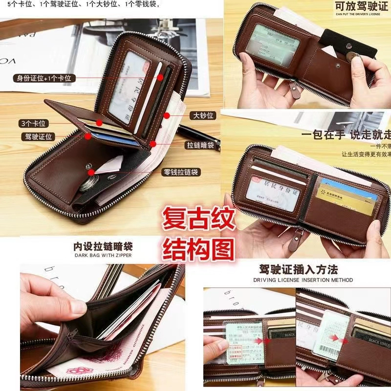 | nameOriginal | Wallet Men's Short Zipper Wallet Men's and Women's Small Bag Retro Trendy Wallet Leather Clip Teen Card Bag |
