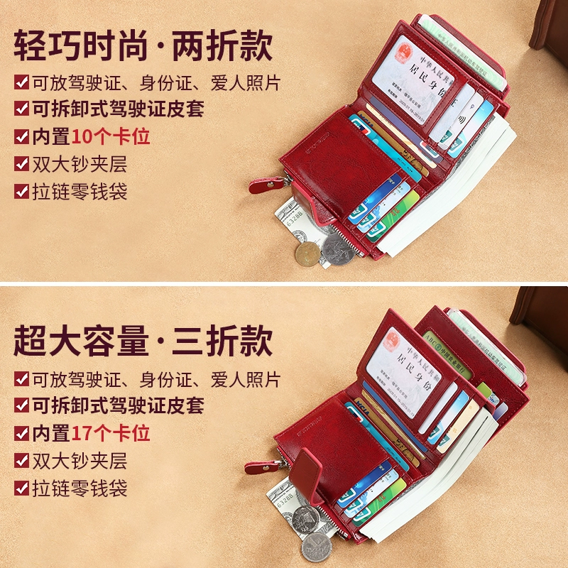 | nameOriginal | Wallet Women's Short Genuine Leather Folding Driver's License Card Holder All-in-one Multifunctional Small Exquisite Cowhide Clip Coin Clip Thin |