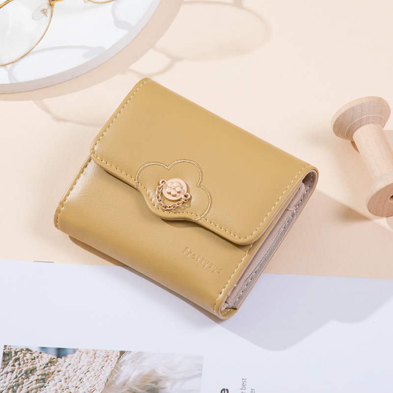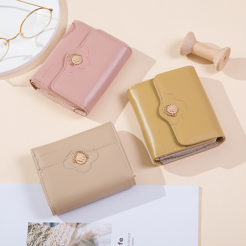 | nameOriginal | Wallet Women's Short Korean Style PU Small Fresh Three-fold Bag Flower Buckle Solid Color Zipper Student Coin Purse Women's Card Bag |