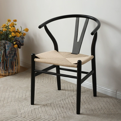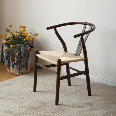 | nameOriginal | Walnut Japanese style rope hoop chair Nordic white oak solid wood dining chair leisure back chair retro log hemp rope chair |
