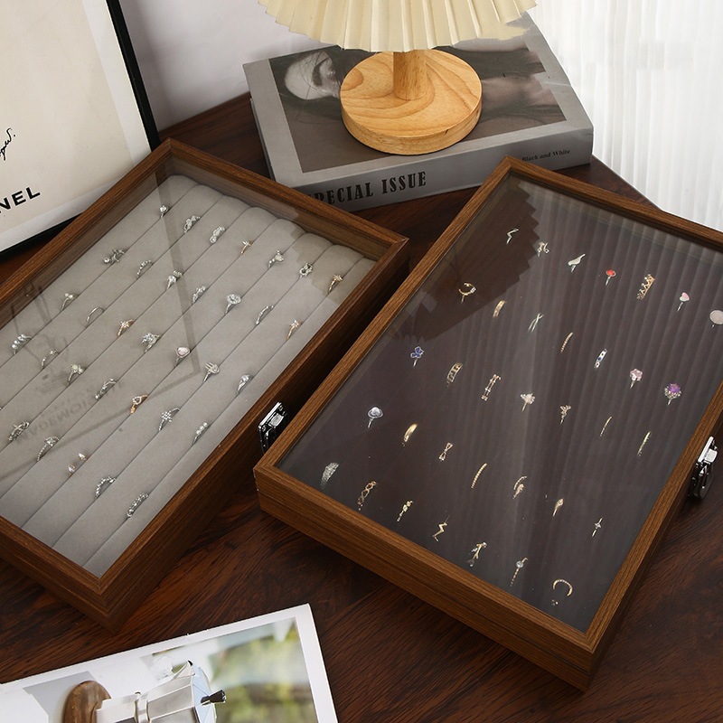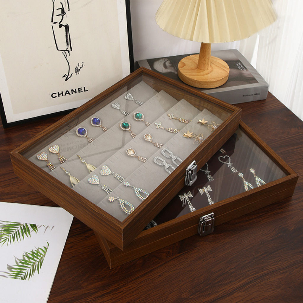 | nameOriginal | Walnut Light Luxury Dustproof Earrings with Cover Earrings Jewelry Storage Box Ring Jewelry Box Earrings Display Box |