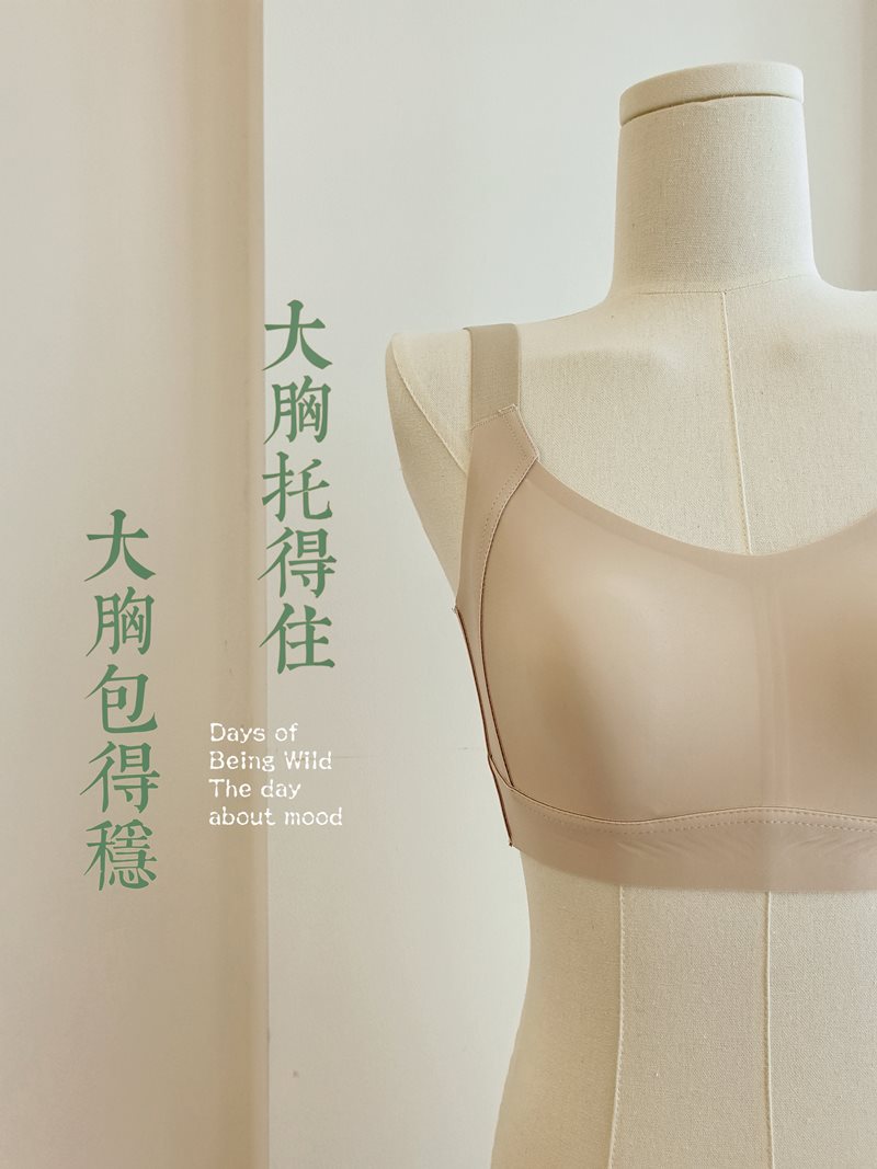 Wang fried special ~ giant small shape four-sided jelly soft support no trace rabbit ears full cup no steel ring bra