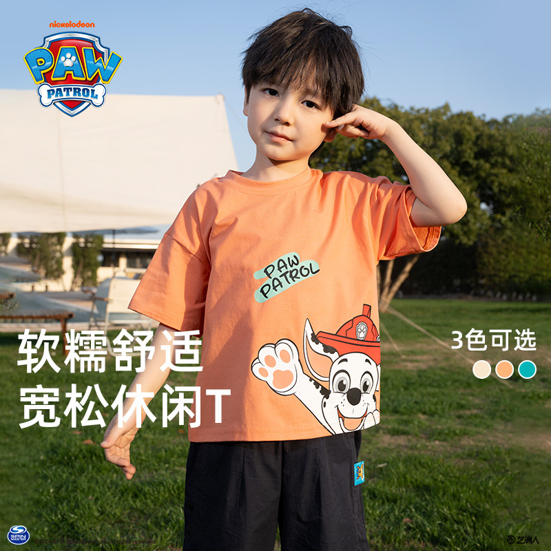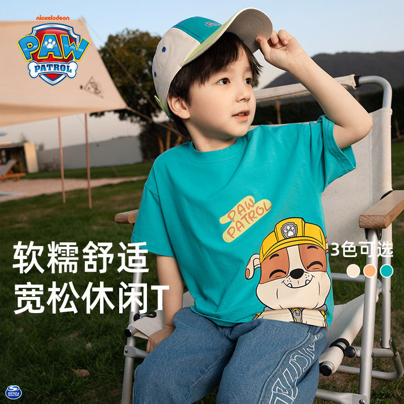 Wang Wang Team Boys Short-sleeved T-shirt Summer 2024 New Cotton Children's Top Summer Baby Boys Base Shirt