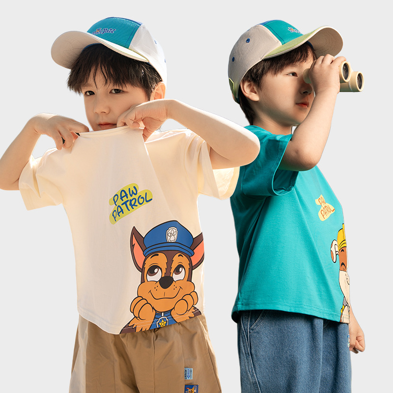 Wang Wang Team Boys Short-sleeved T-shirt Summer 2024 New Cotton Children’s Top Summer Baby Boys Base Shirt