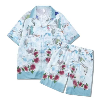 Wang Yibo's same style hip-hop couple floral short-sleeved shirt