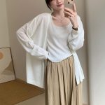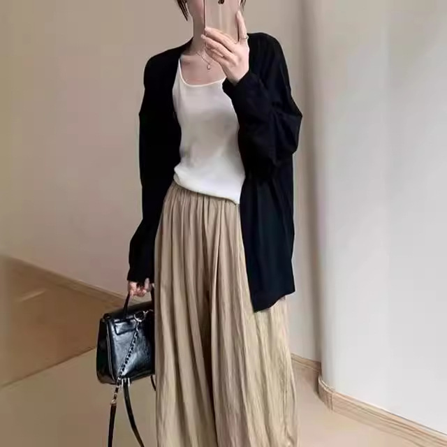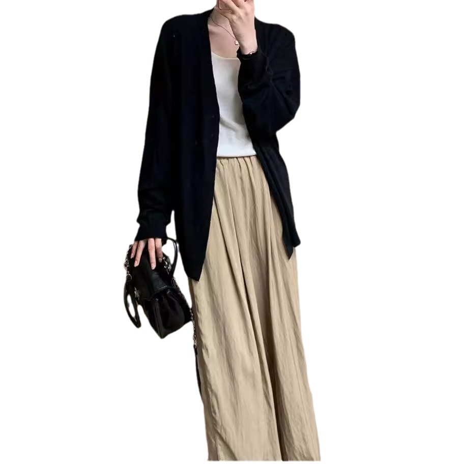 Wanmatch wool-like early autumn knitted cardigan summer new mid-length thin slimming loose sun protection coat