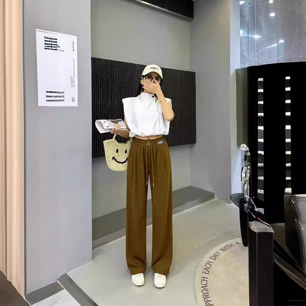 | nameOriginal | WANYE summer new loose casual wide leg pants women's high waist elastic waist drawstring vertical sense thin sports pants |