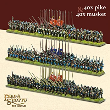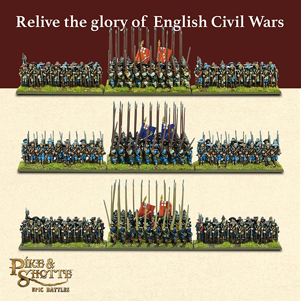 Wargames Delivered – Pike & Shotte Epic Battles – English Civil Wars Infantry Battalia- 28mm Miniature, 3 Regiments (80 Men Each), Bases, Flag Sheet, Digital Bundle – Action Figures by Warlord Games