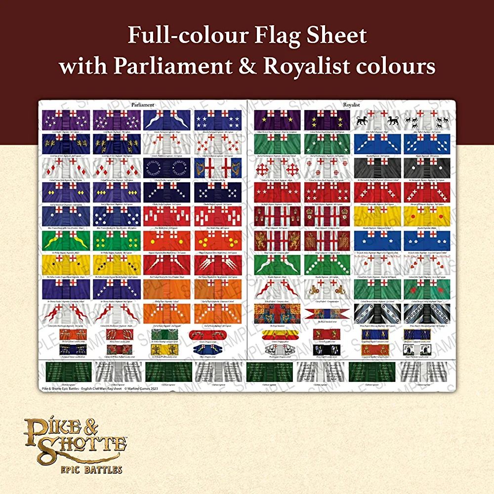 Warlord Games’ Pike & Shotte Epic Battles – English Civil Wars Infantry Battalia is a 28mm miniature set that includes 3 regiments (80 men each), bases, flag sheet, and a digital bundle.