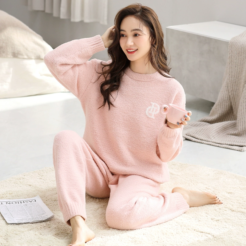 | nameOriginal | Warm and warm pajamas for women in winter new style half velvet plus velvet thickened warm winter simple casual home wear set |