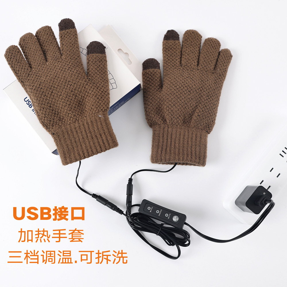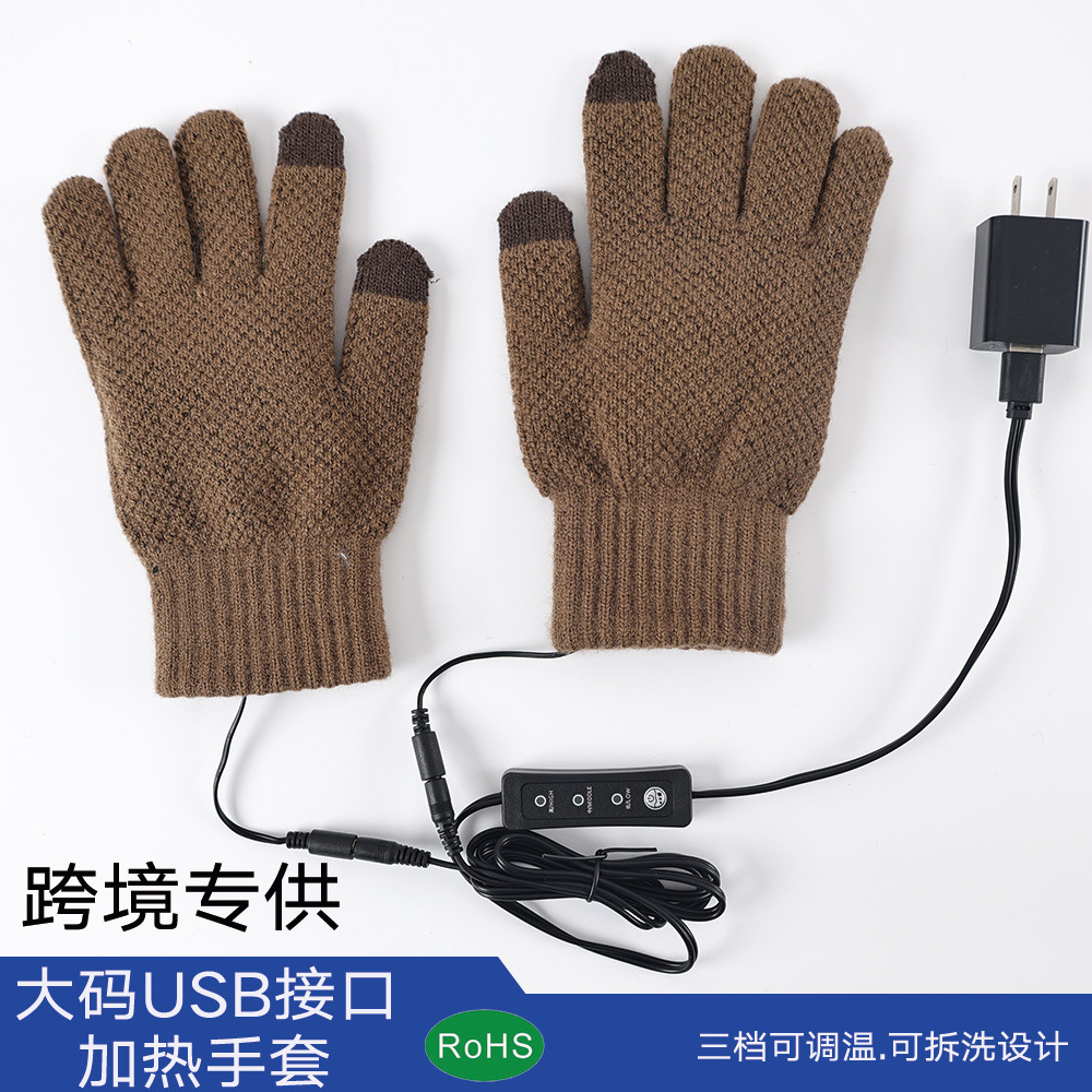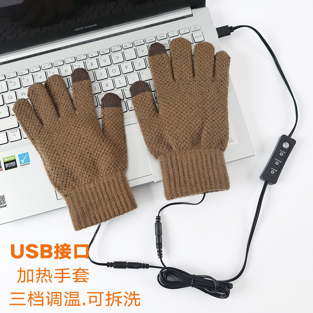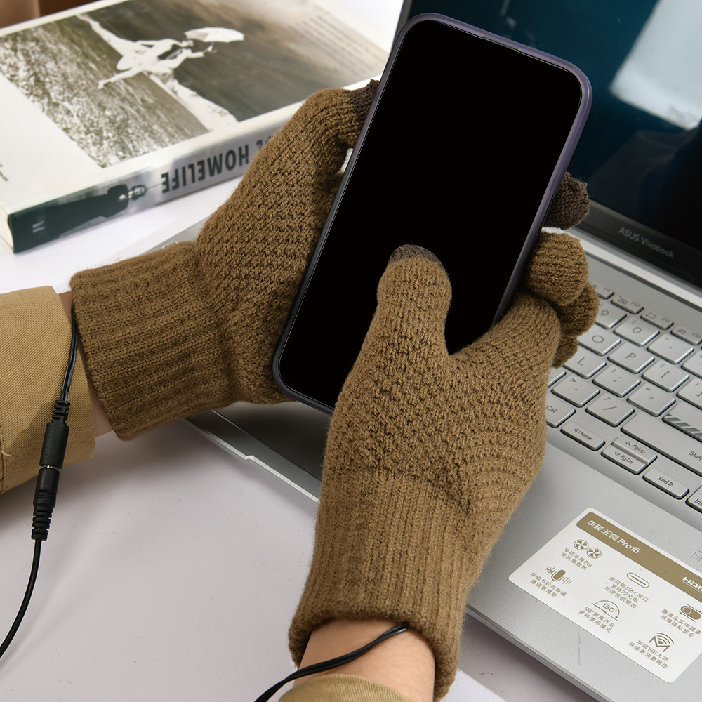 Warm Boom USB Gloves Temperature Adjustable Charging Treasure USB Interface Heating Plush Warm Knitted Gloves plus size Touch Screen