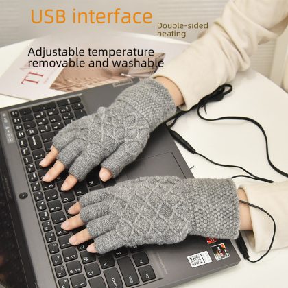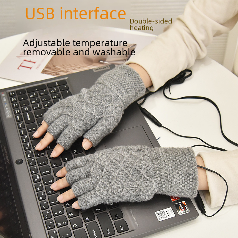 Warm Boom USB Heating Gloves Double-sided Plush Charging Treasure Computer Electric Heating Warm Gloves Temperature Adjusting Warm Hand Treasure