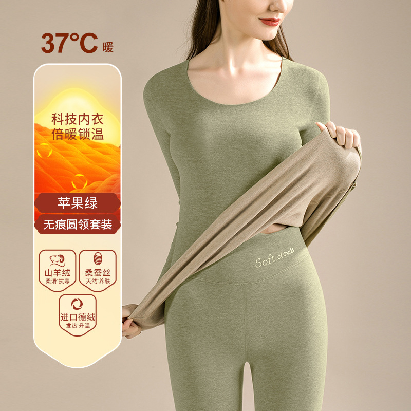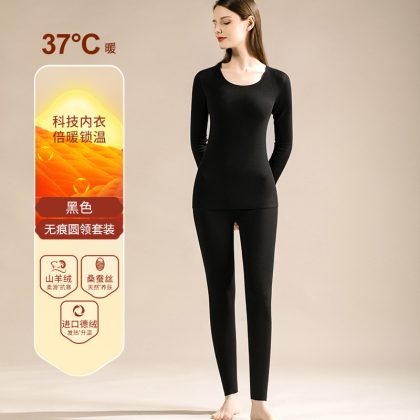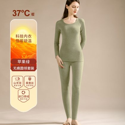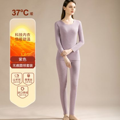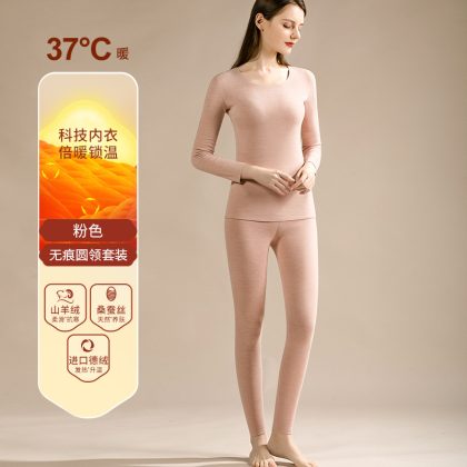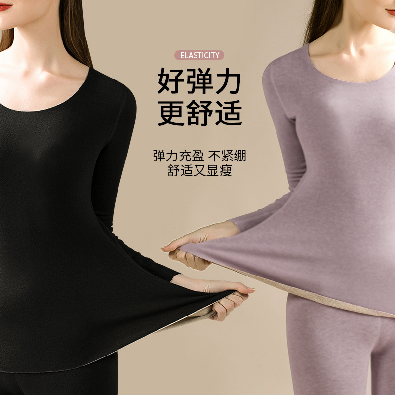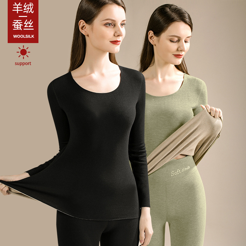 Warm clothes women’s suit cashmere silk seamless heating plus velvet thickened autumn clothes long pants bottoming shirt winter
