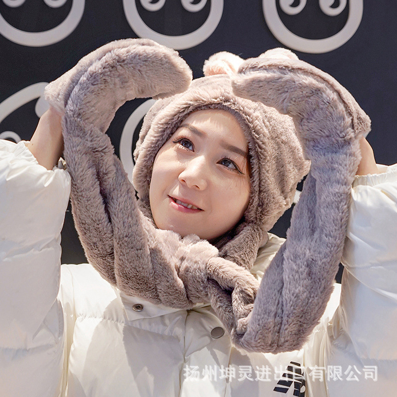 | nameOriginal | Warm Three-in-One Scarf Autumn and Winter Korean New Rabbit Velvet Three-Piece Hat Scarf Gloves Thickened Hat |