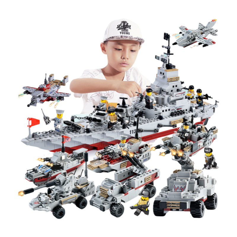 Warship Building Blocks City Assembled Military Aircraft Carrier Puzzle Kids Boys Toy Battleship Lego Compatible