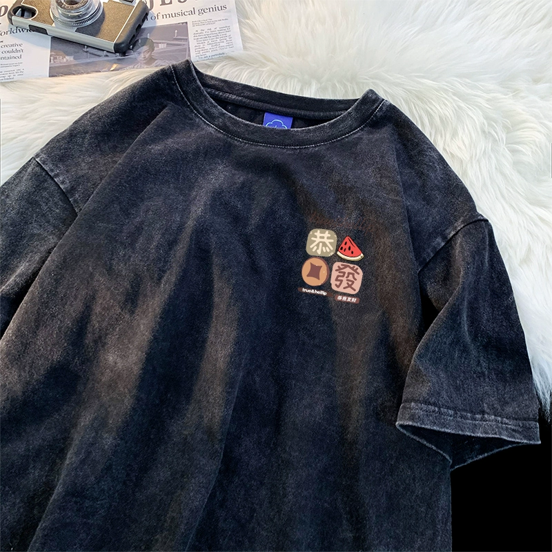 | nameOriginal | Washed and distressed heavy short-sleeved T-shirt for men in summer American retro ins fashion brand high street oversize trendy T-shirt |