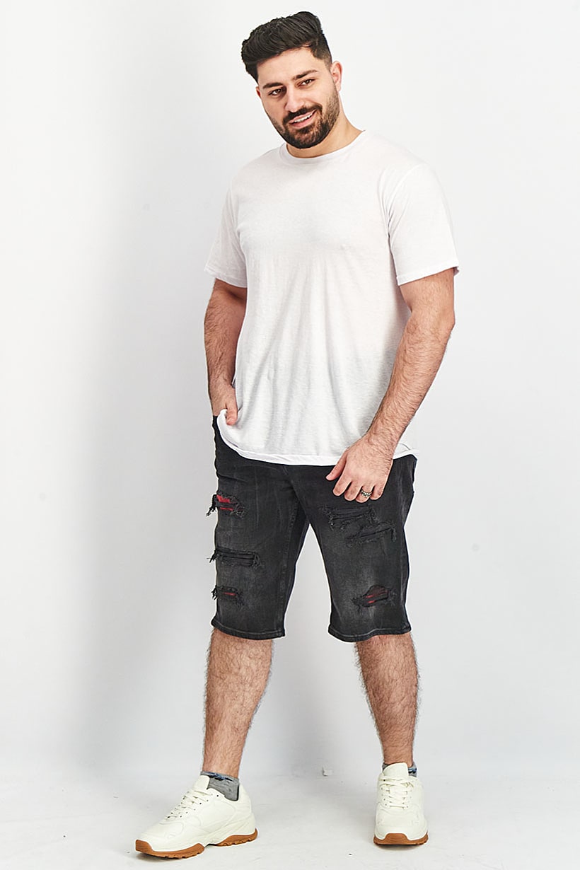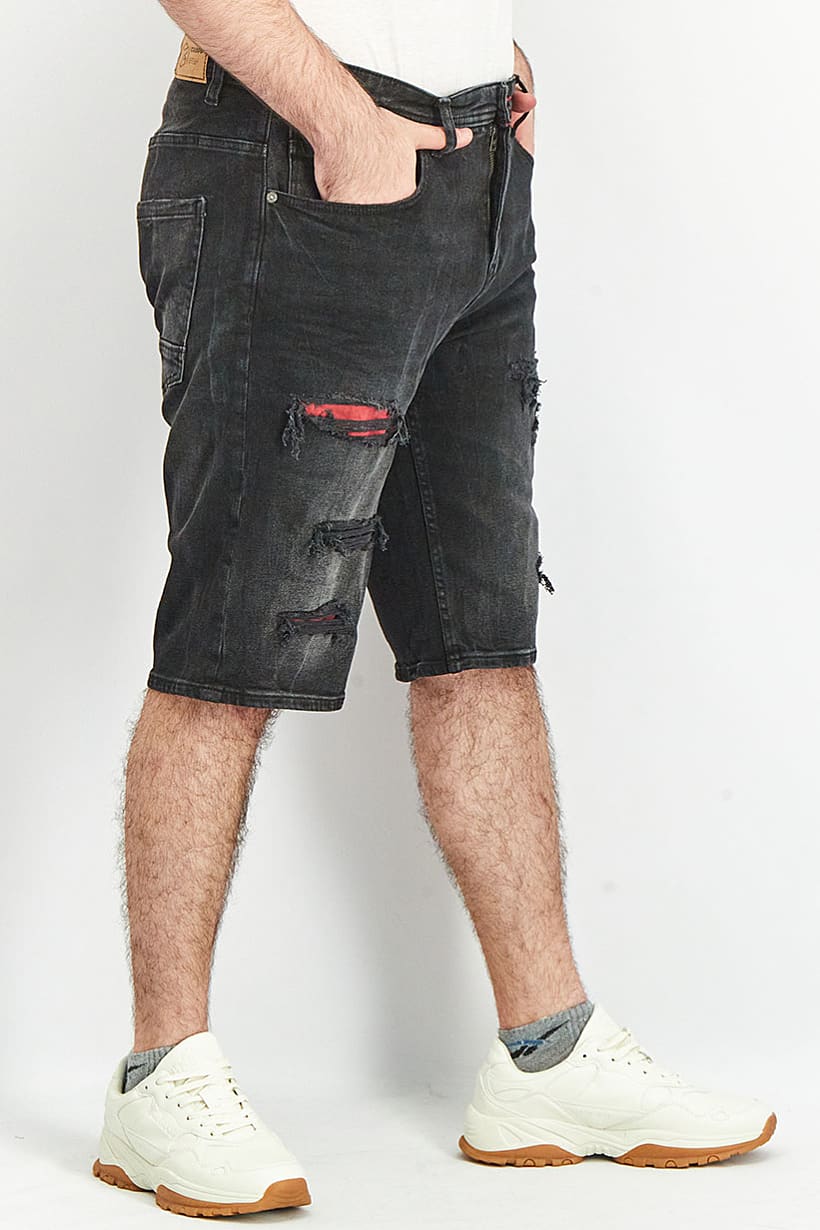 | nameOriginal | Men Regular Fit Ripped Demin Short, Washed Black |