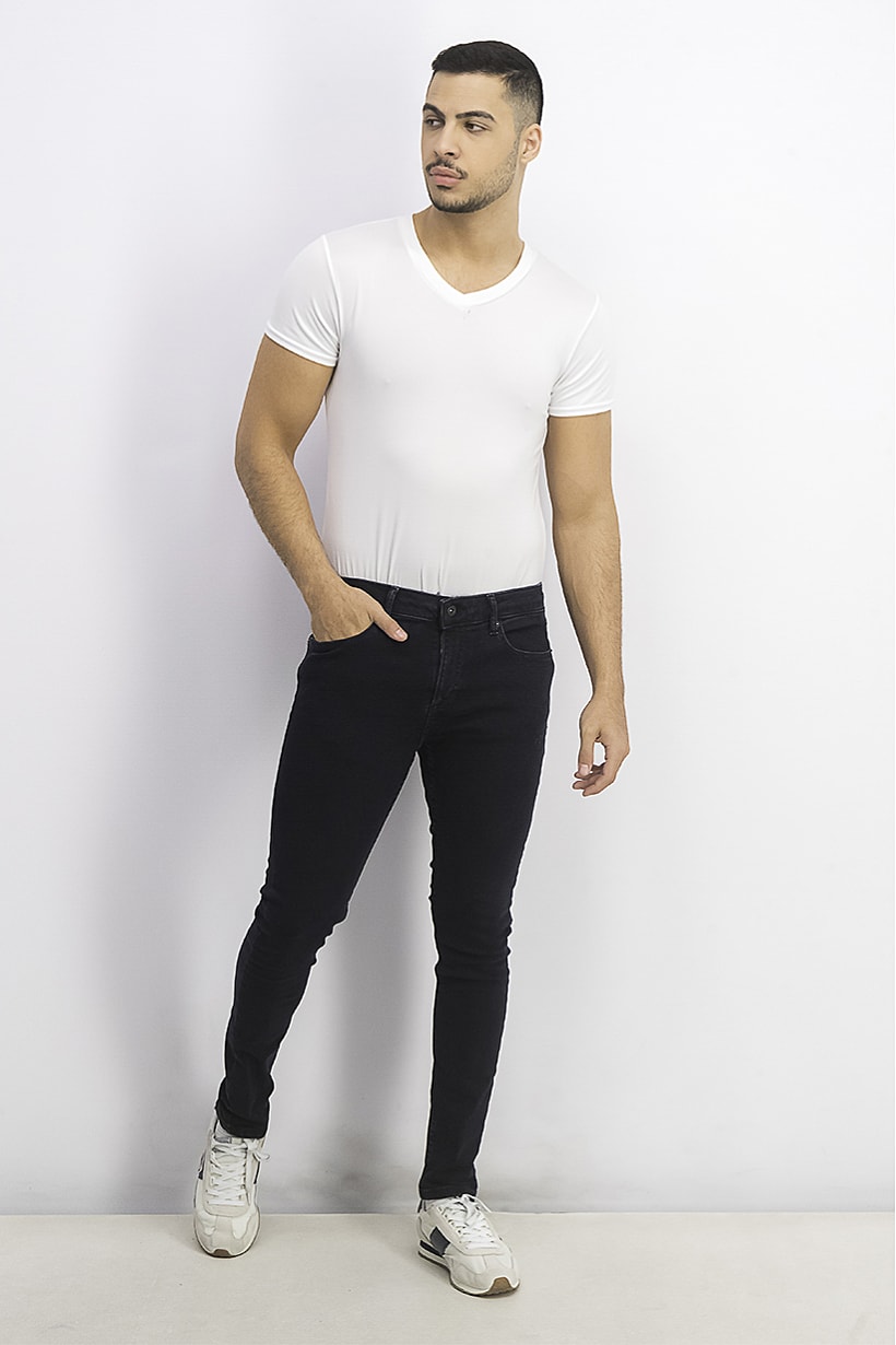 Bottom Hem : Straight, Care : Machine washable, Fit : Regular fit, No of pockets : 5, Size shown : Inches, Stretch Type : Stretchable, Types of Jeans Rise : Mid rise, Bottom Closure : Button, Bottom Style/Pattern : Five pocket style, Disclaimer : Product color may slightly vary due to photographic lighting sources or your monitor settings., Fabrics : 98% Cotton, 2% Elastane, Pattern & Print : Washed, Color Family : Black,