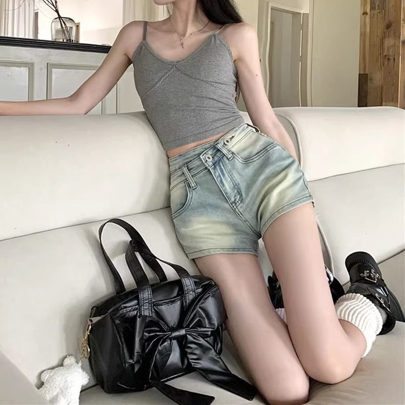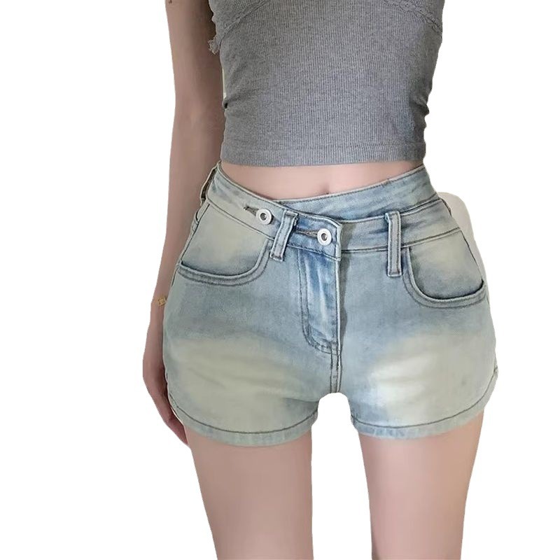 | nameOriginal | Washed Blue Denim Shorts Women's 2024 Summer New High Waist Slimming Spice Girls Irregular Straight Hip Hot Pants |