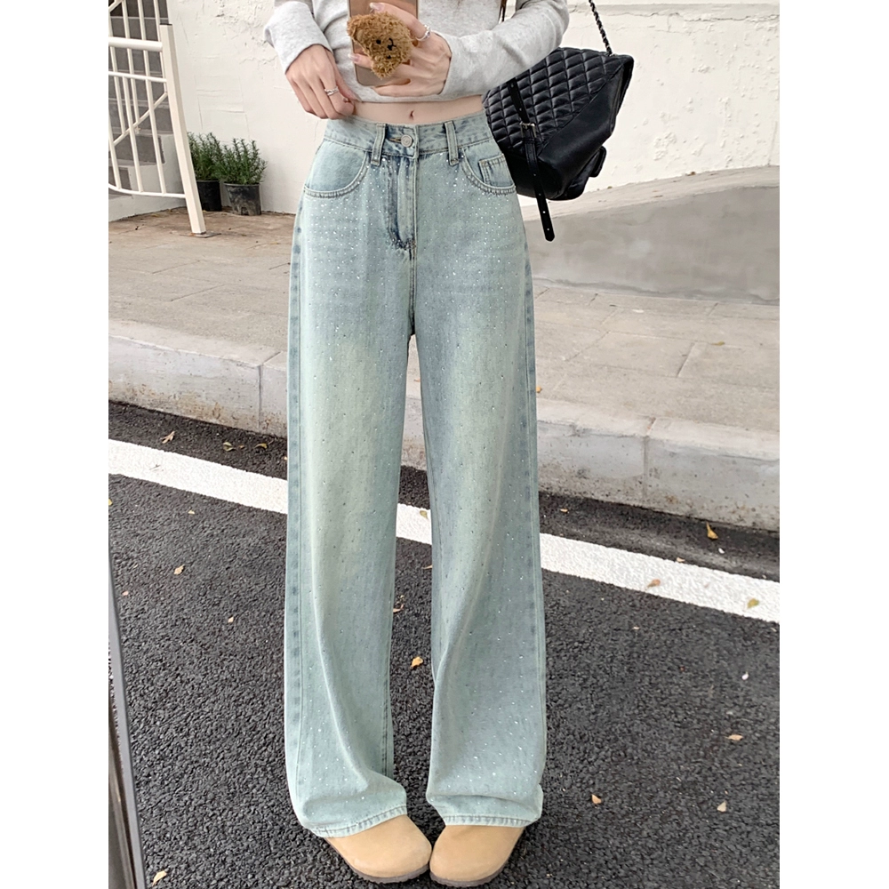 | nameOriginal | Washed blue high-waisted jeans with rhinestone design |