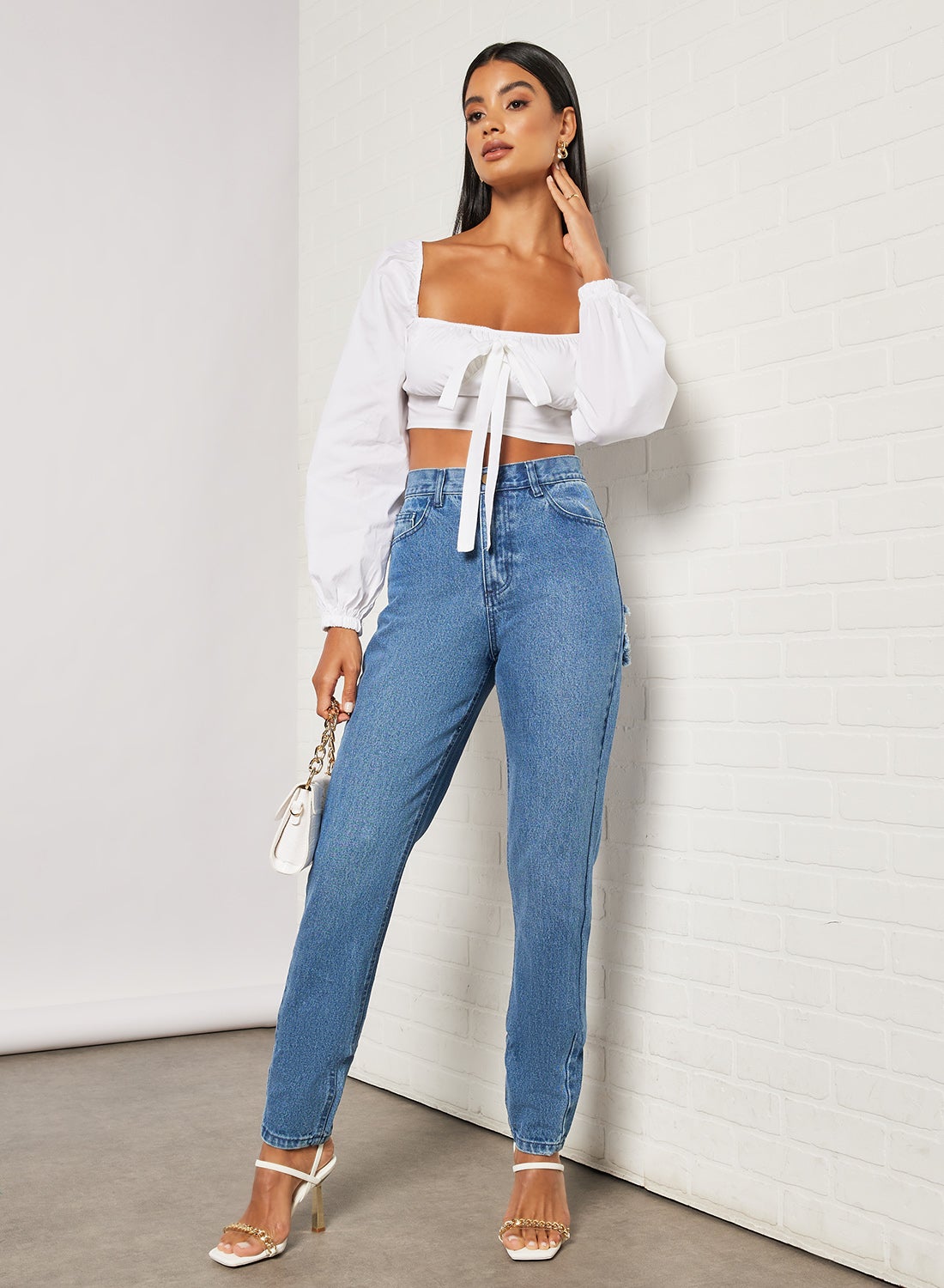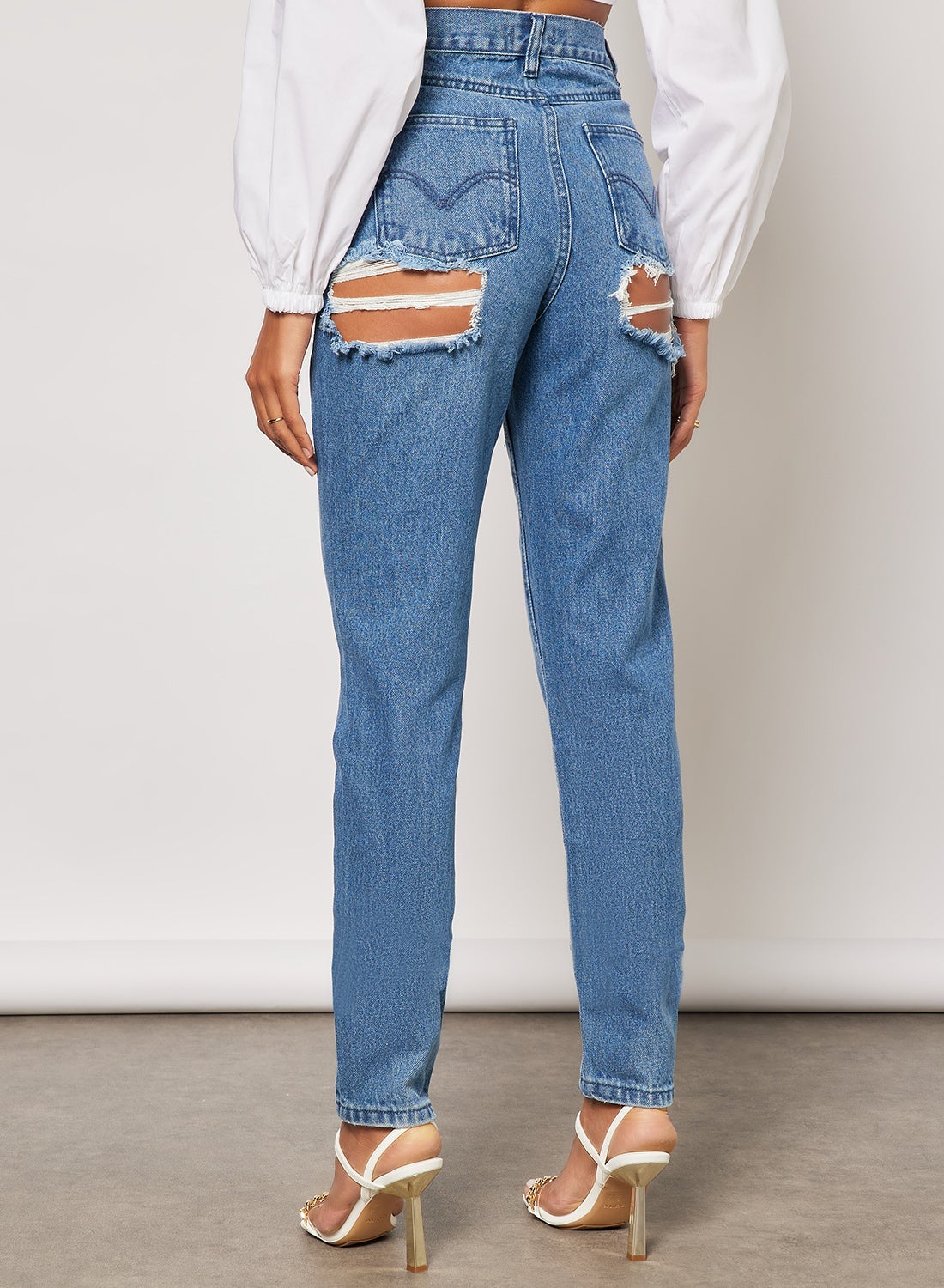 | nameOriginal | Ripped Back Mom Jeans Washed Blue |