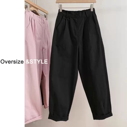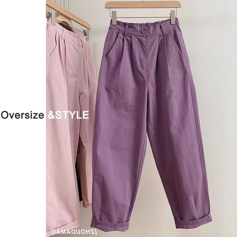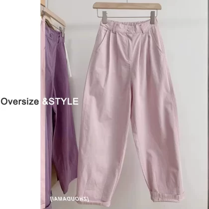 Washed cotton thin high-waisted loose casual wide-leg pants