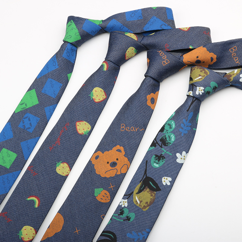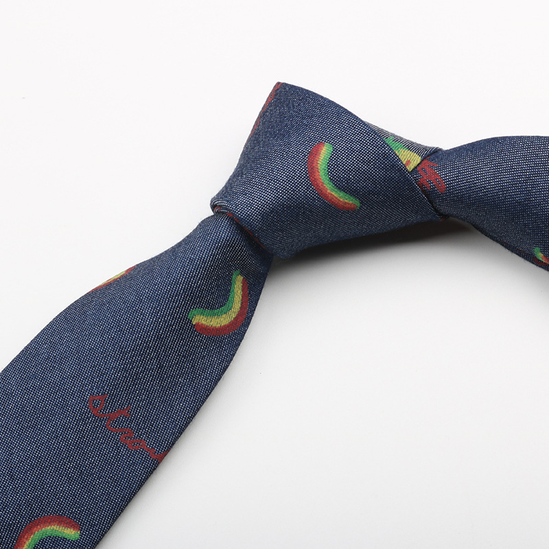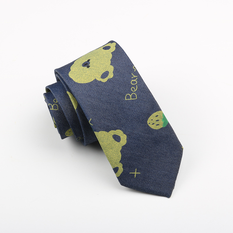 | nameOriginal | Washed Denim tie fun cartoon vintage printing men and women hand-printed floral 6cm narrow version wholesale in stock |