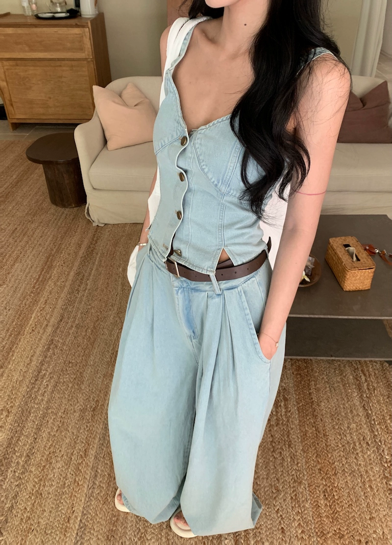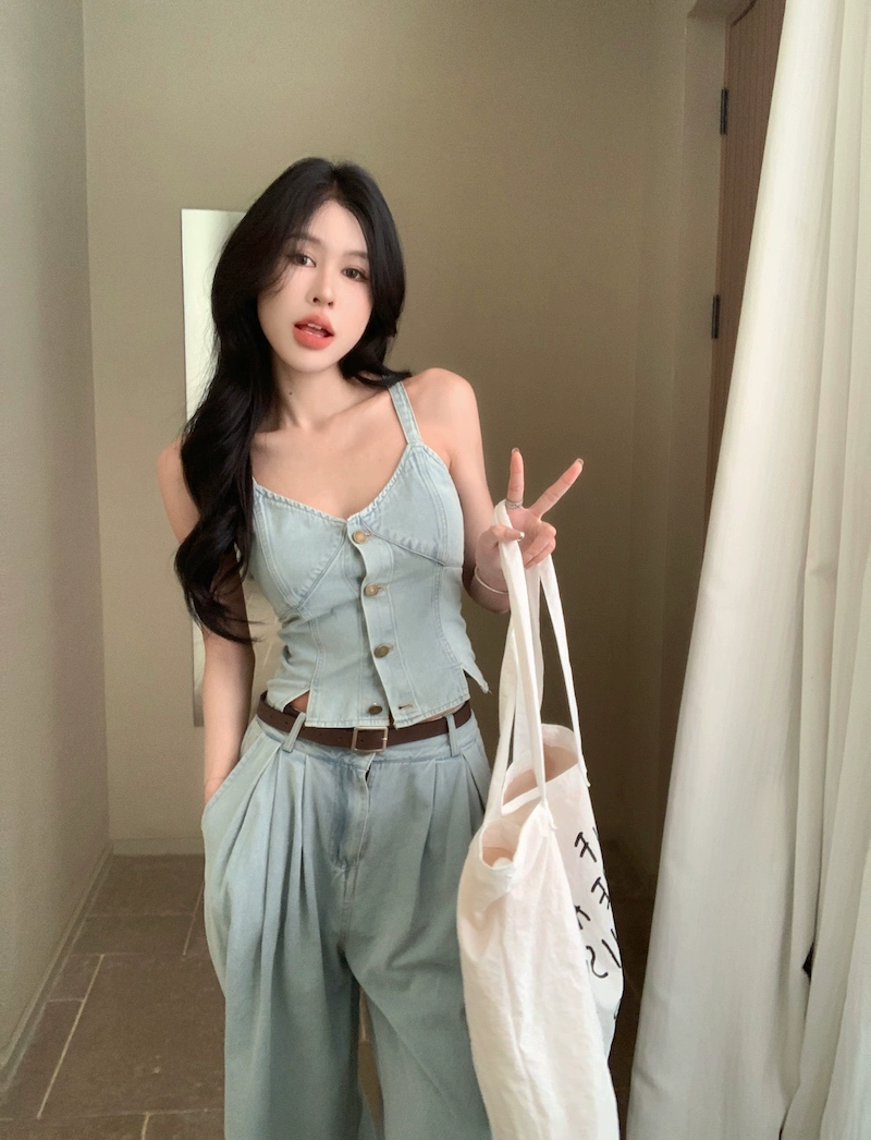 | nameOriginal | Washed denim women's summer casual two-piece suspender set |