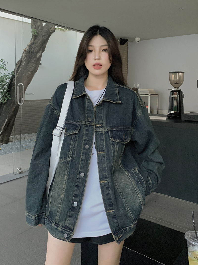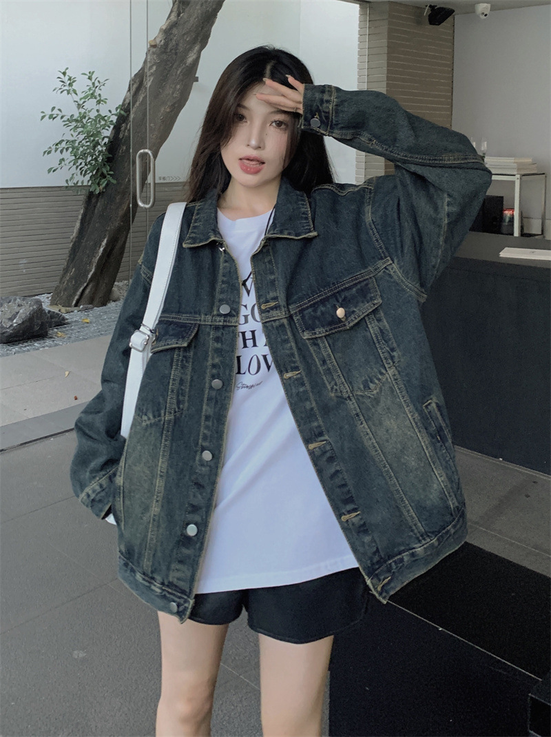| nameOriginal | Washed distressed coat for women Autumn 2023 new trendy Denim loose casual long-sleeved jacket top |