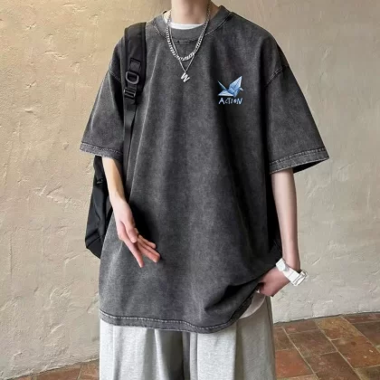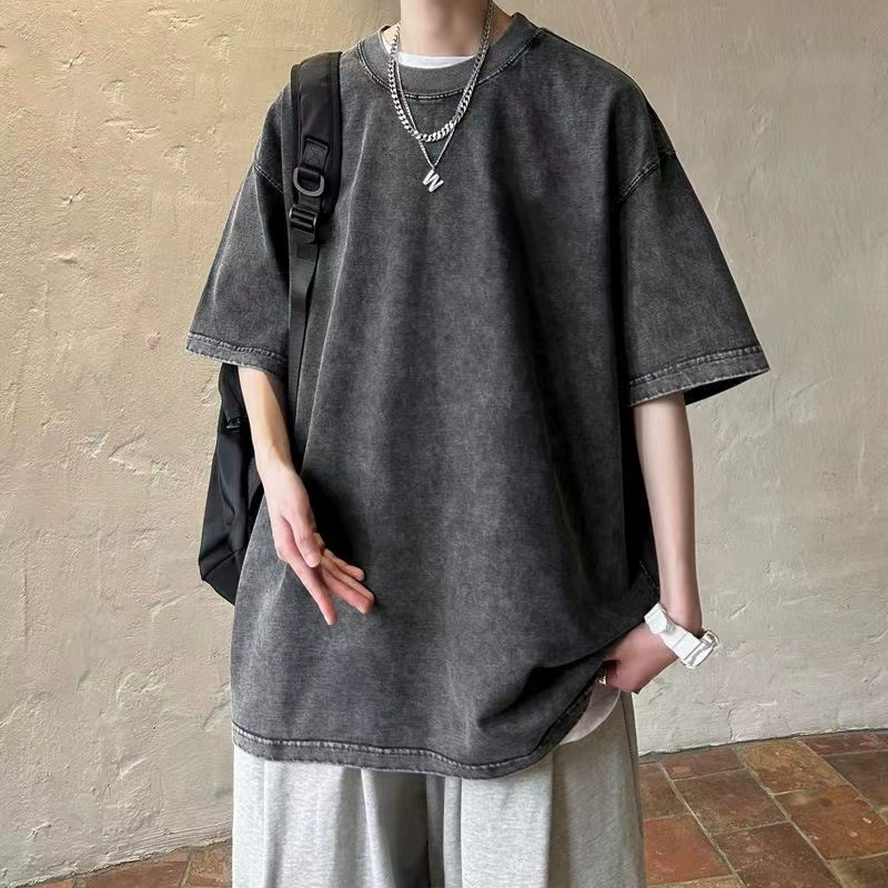 Washed old short-sleeved T-shirt men’s summer ins trendy American retro heavy cotton half-sleeved T-shirt top