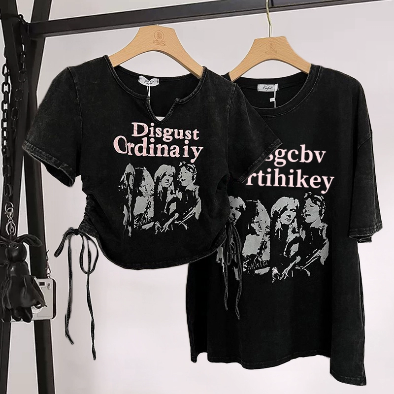 | nameOriginal | Washed distressed slim short-sleeved couple summer T-shirt |