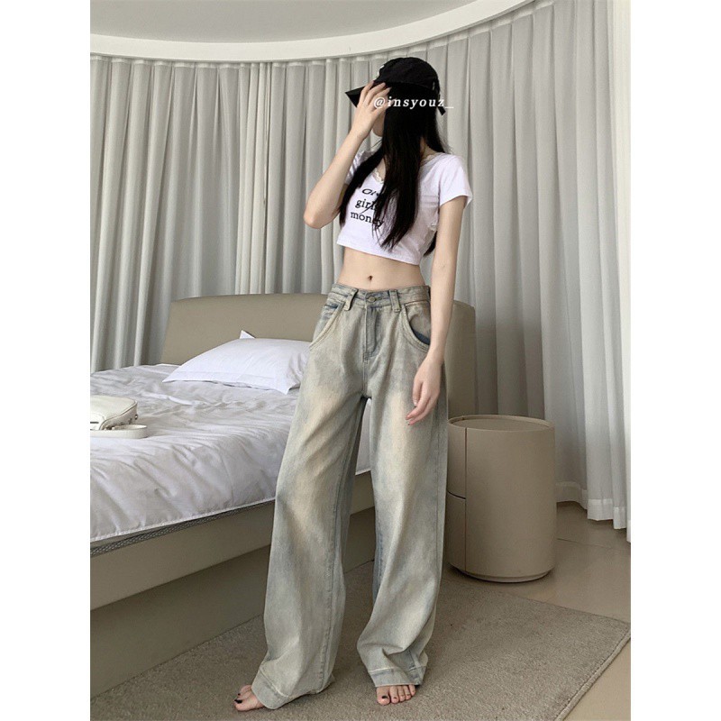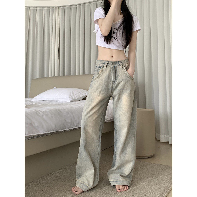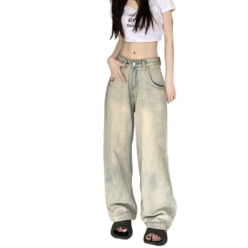 | nameOriginal | Washed Dressed Petite Straight-Leg Jeans Women's Summer American Style Ladded High Street High Waist Loose Wide-Leg Pants |