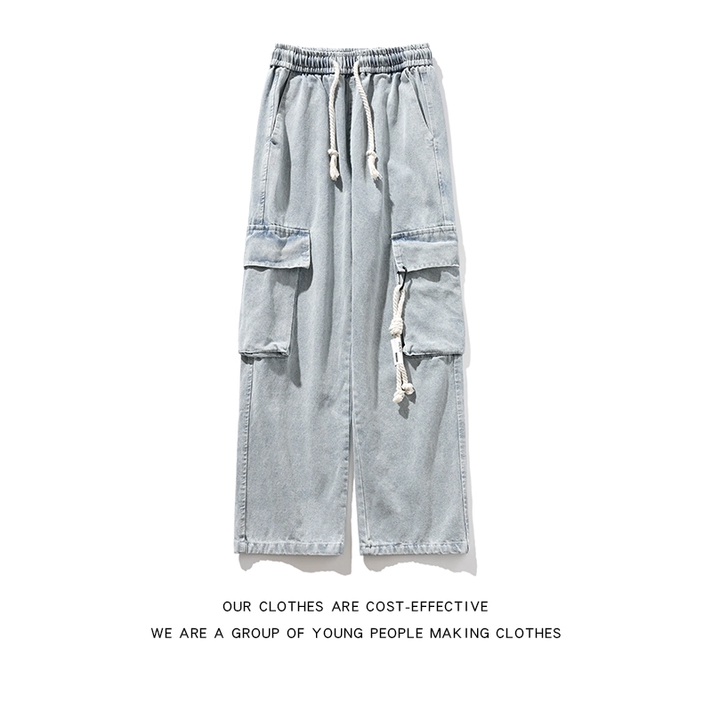Washing water men’s large pocket drawstring dad pants workwear