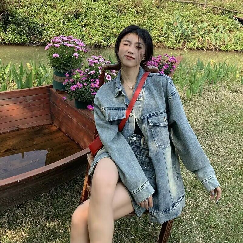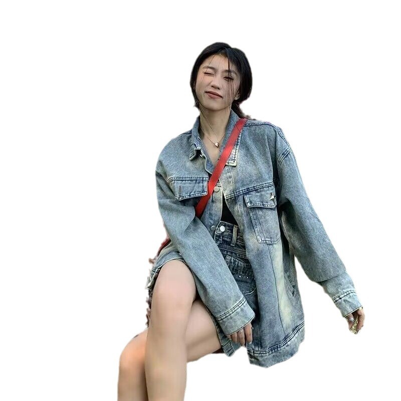 | nameOriginal | Washed Old Design Sense Denim Jacket Women's 2024 Spring and Autumn American Retro Trendy Cool Loose Ins Top Trendy |