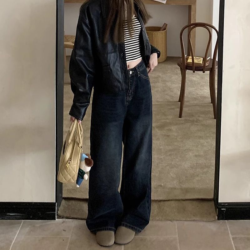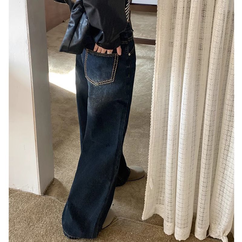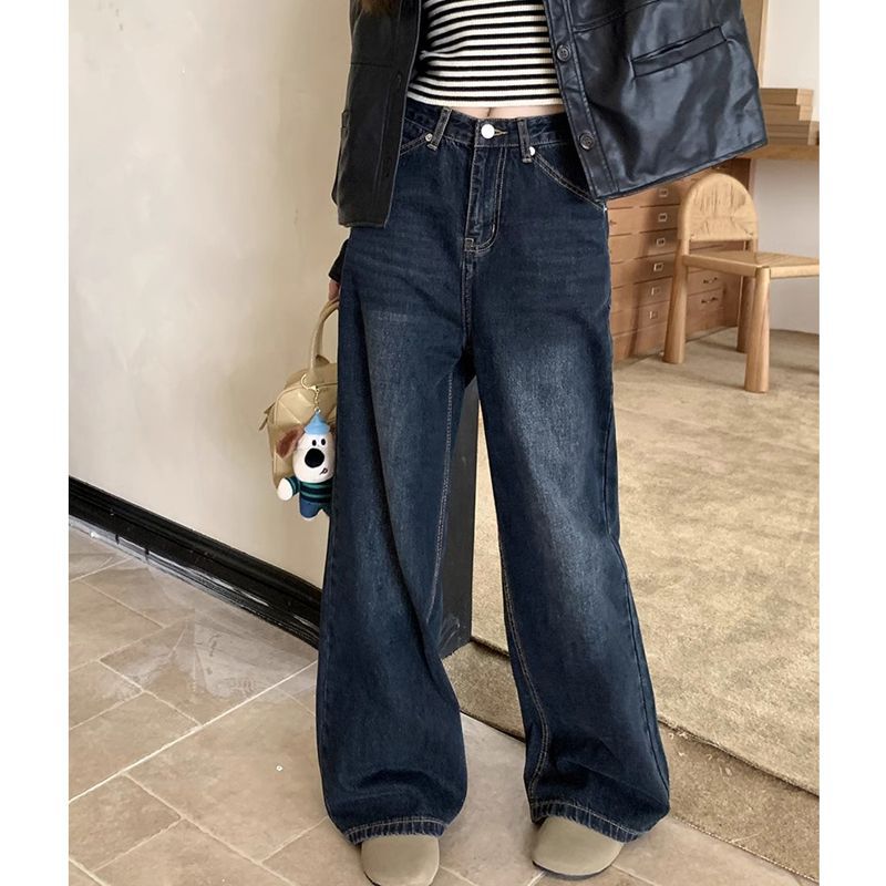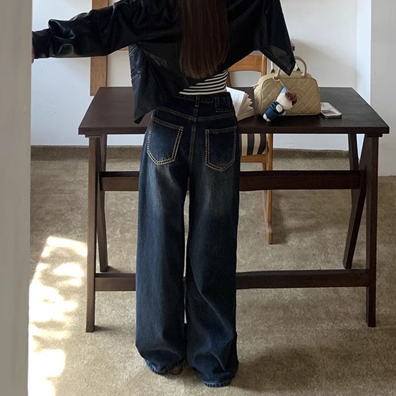 | nameOriginal | Washed Old Vintage Straight Jeans Women's Autumn High Waist Loose Slimming Wide Leg Trendy Trousers |