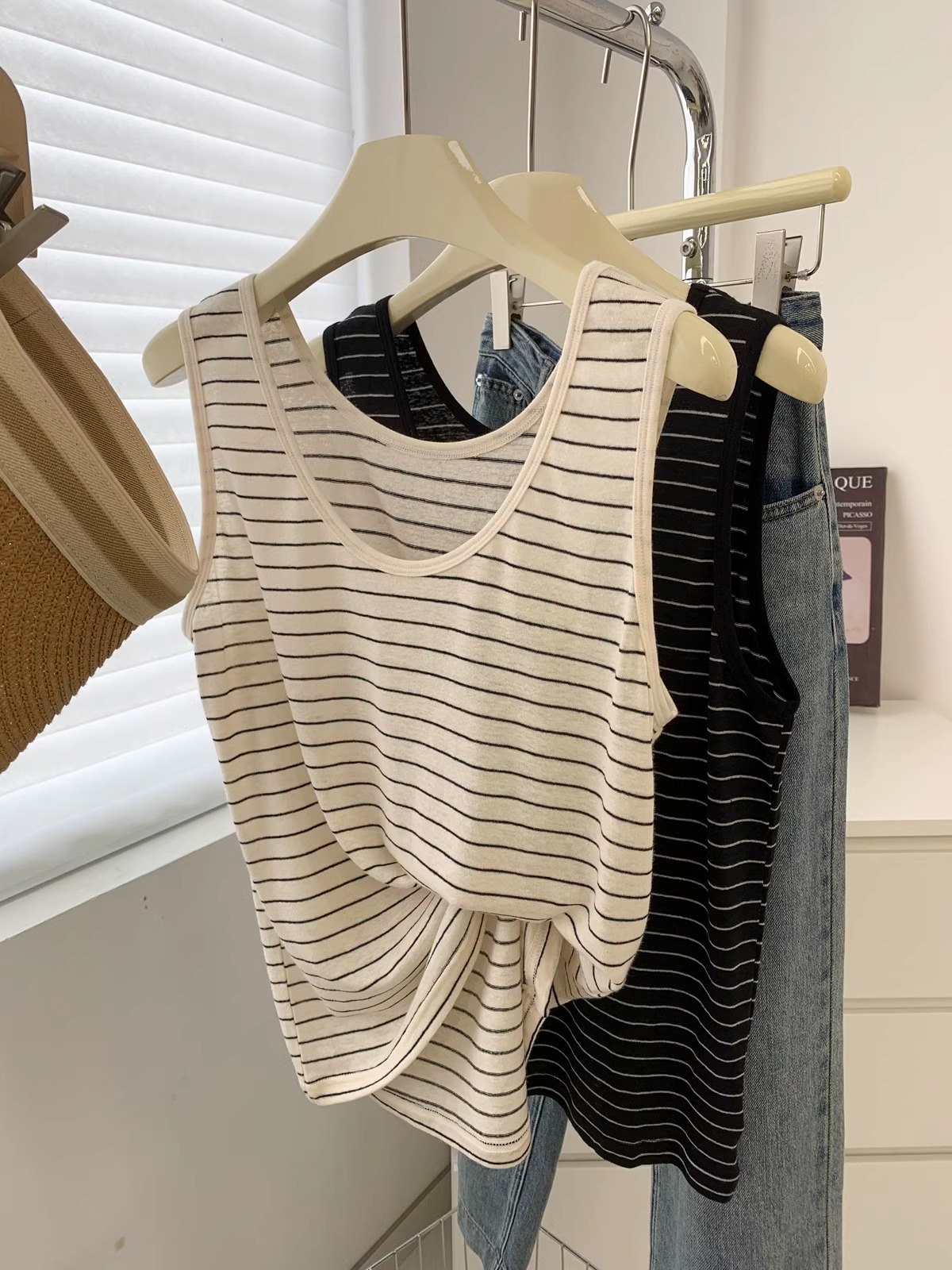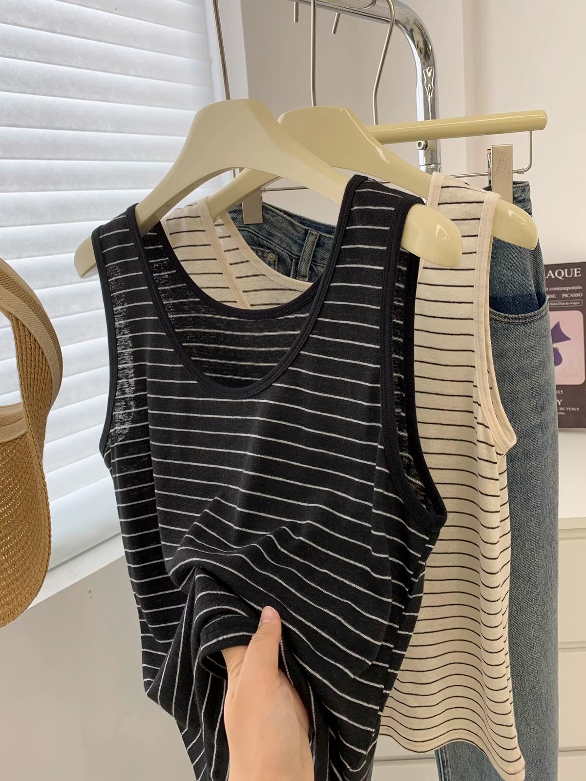 | nameOriginal | Washed Vintage Linen Cotton Striped U-neck Vest Women's Summer Outer Wear Loose Slimming All-match Sleeveless T-shirt Base Shirt |