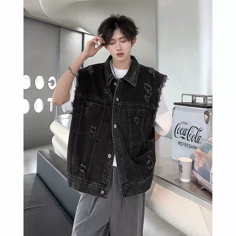 Washed worn cat extension spring and summer handsome denim vest