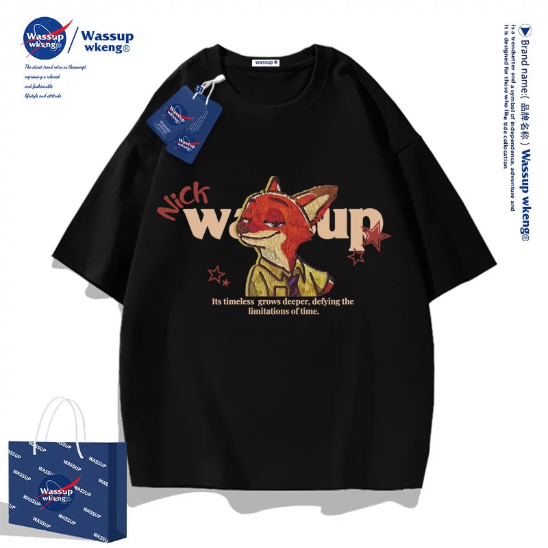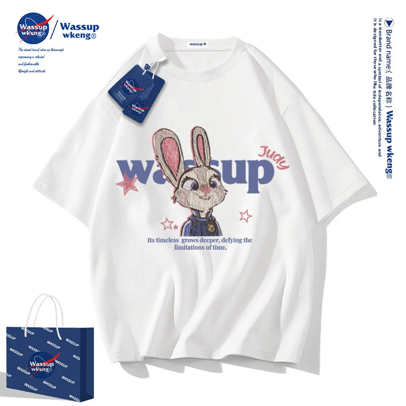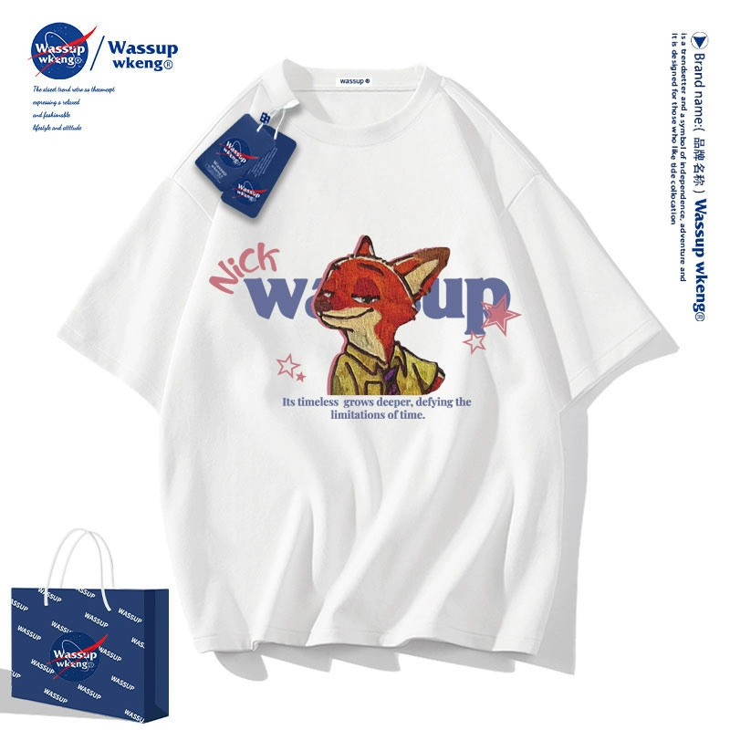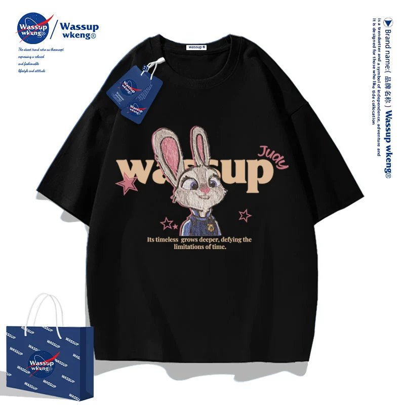 | nameOriginal | wassup joint short-sleeved T-shirt men's summer wear 2024 new youth fashion brand trendy loose half-sleeved top |