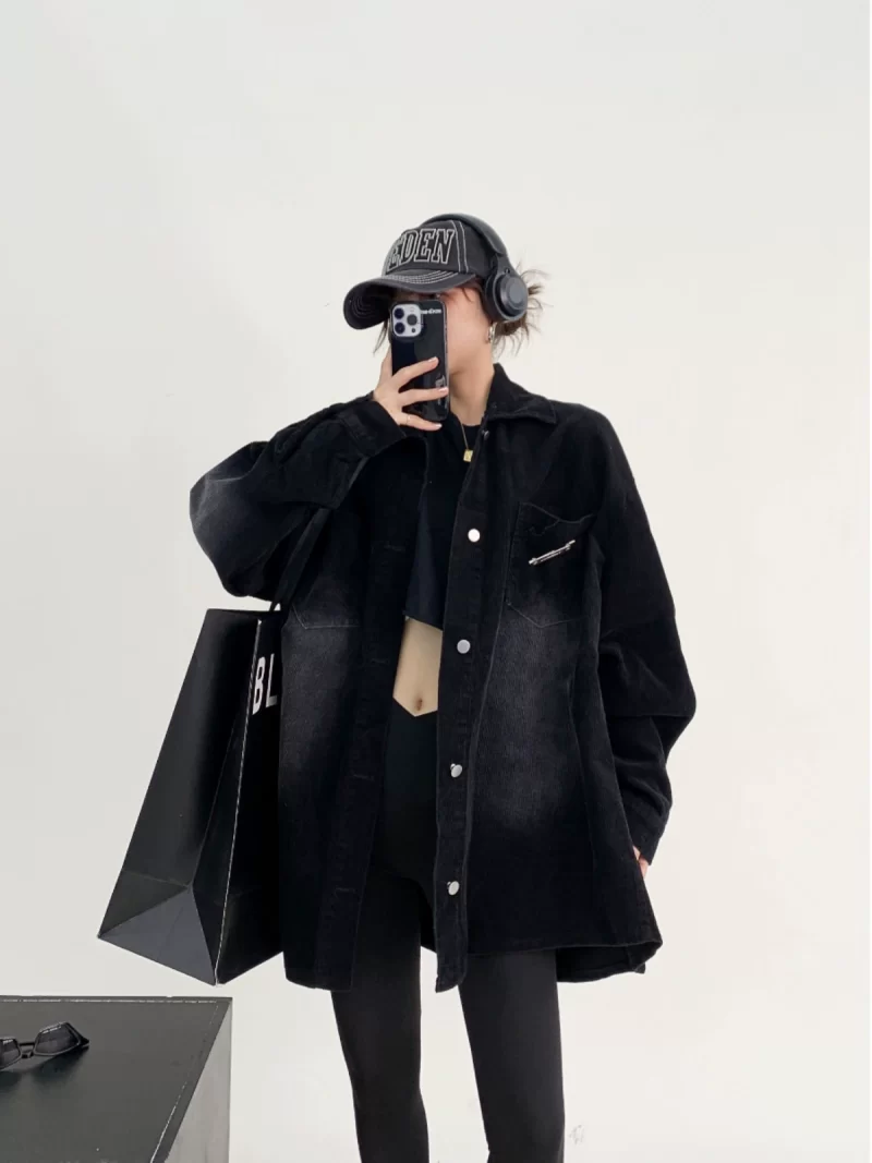 nameOriginal | Waste wood autumn American retro design niche shirt loose heavy-duty old corduroy shirt jacket women's trendy |