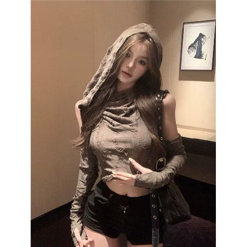 | nameOriginal | Wasteland style y2k sweet hottie sleeves hooded top |