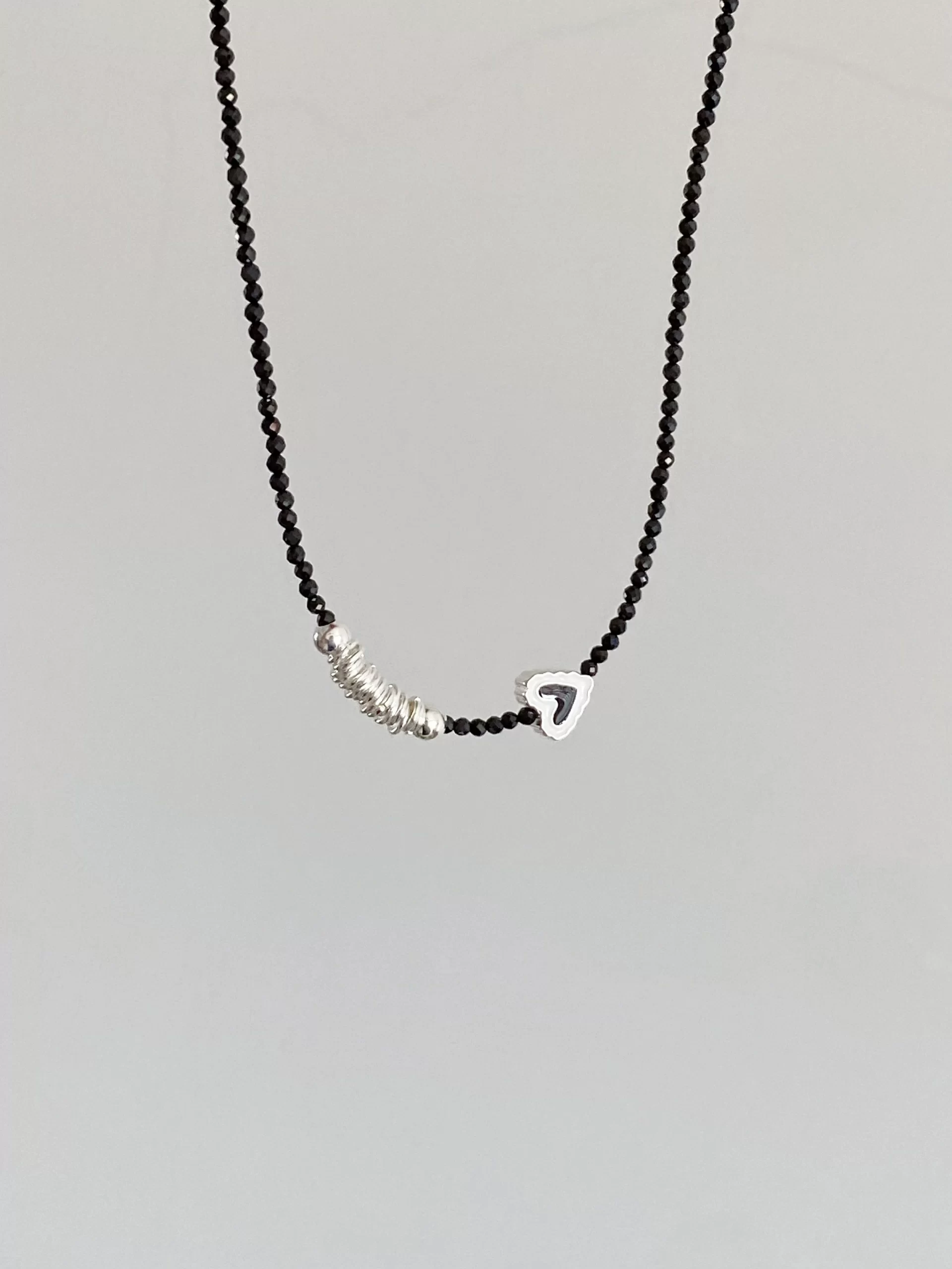 | nameOriginal | Watakawa-chan 925 sterling silver simple and compact black crystal silver ring dripping glaze love necklace female clavicle chain ins niche trend |
