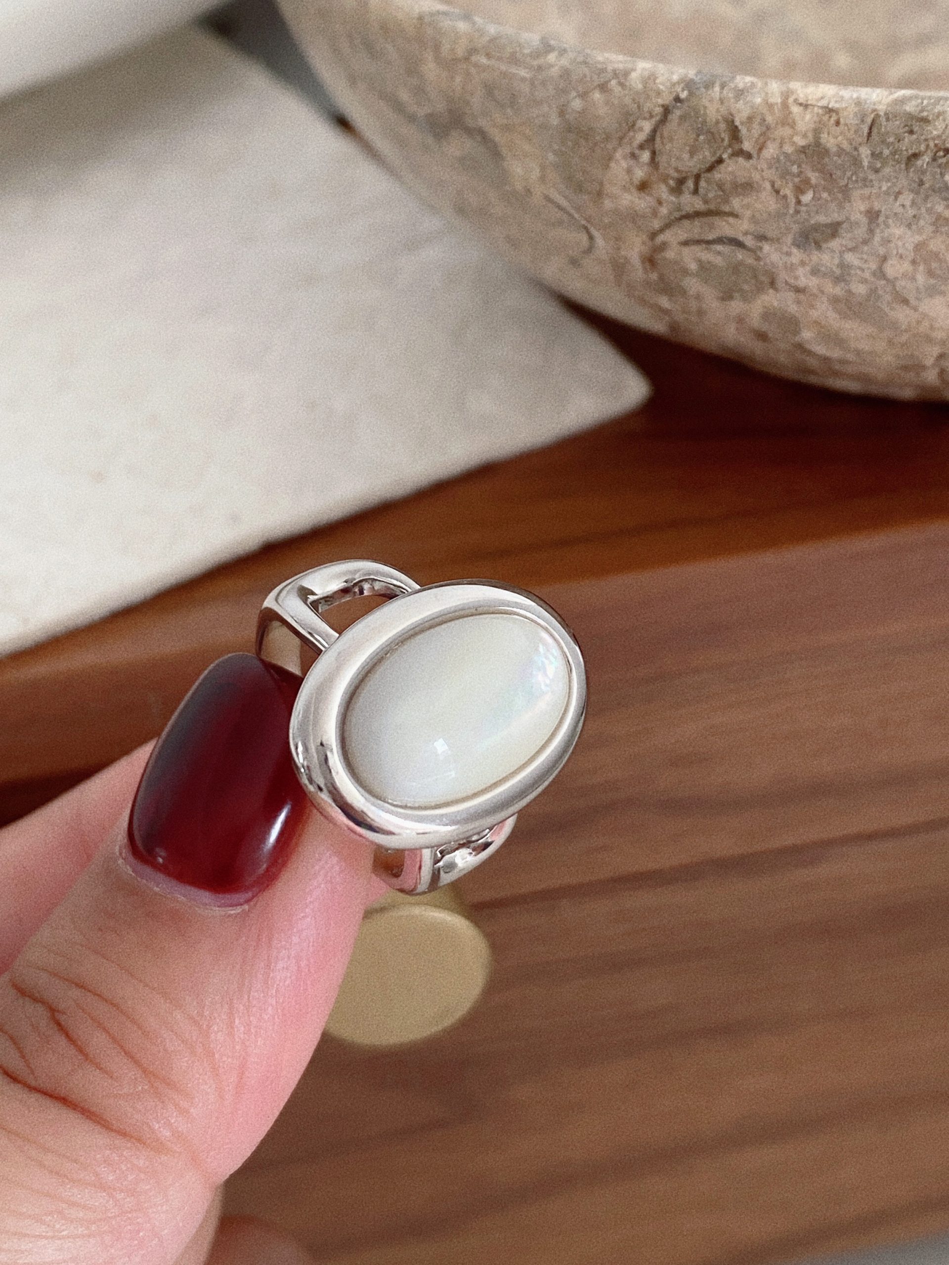Watakawa-chan S925 sterling silver fashionable and high-end natural shell oval open ring women's index finger ring street Hong Kong style