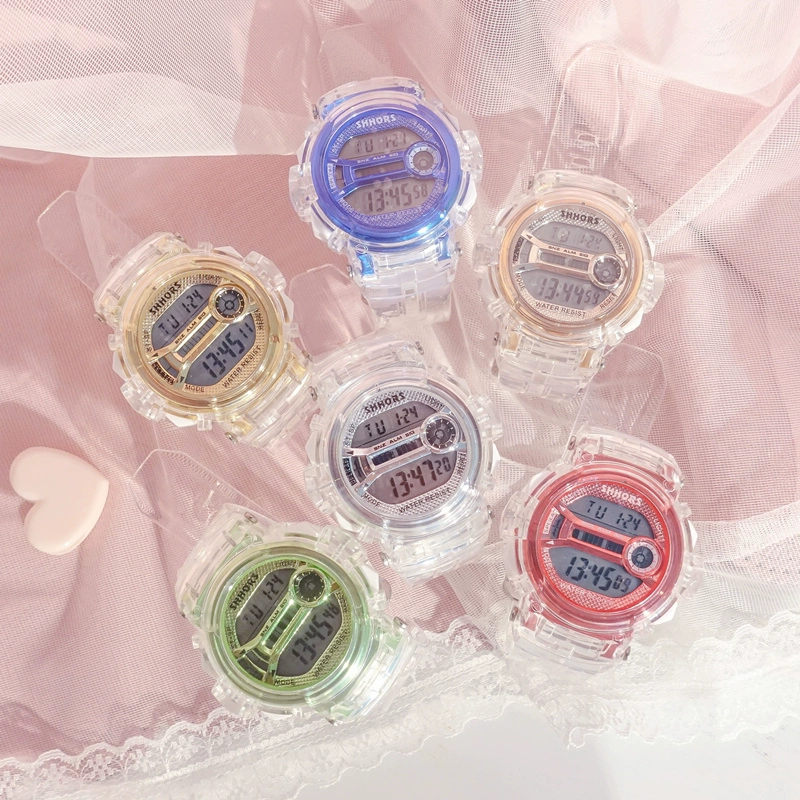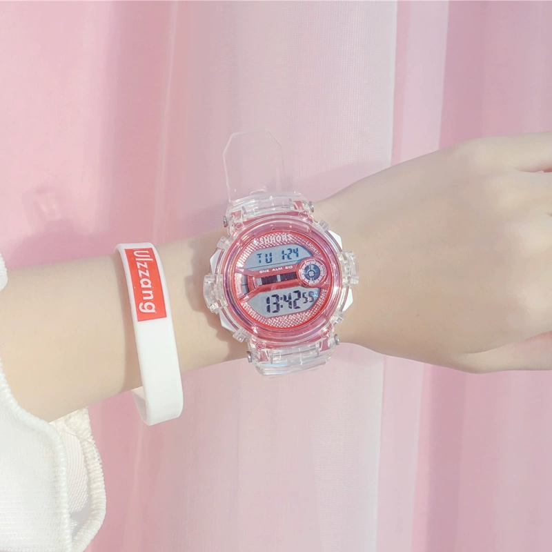 | nameOriginal | Watch with alarm clock for women, simple temperament, student, high school student, boy, teenager, transparent tomato internet celebrity electronic watch |