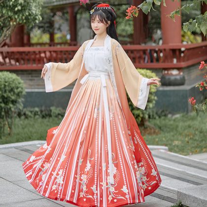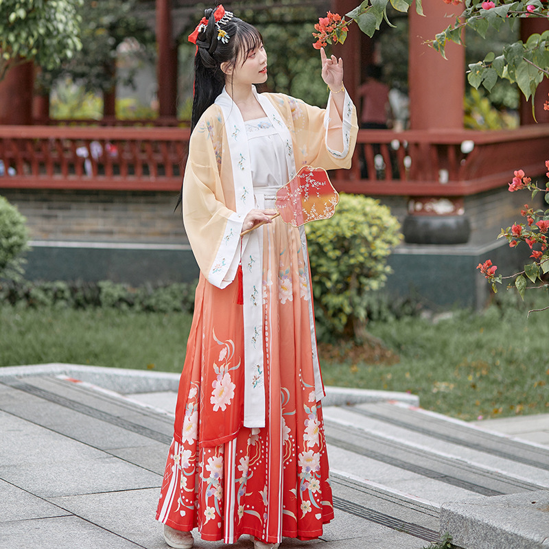 | nameOriginal | Water Cloud Room original Hanfu [flower butterfly] song style placket long raccoon three-piece set waist skirt spring and summer Daily |