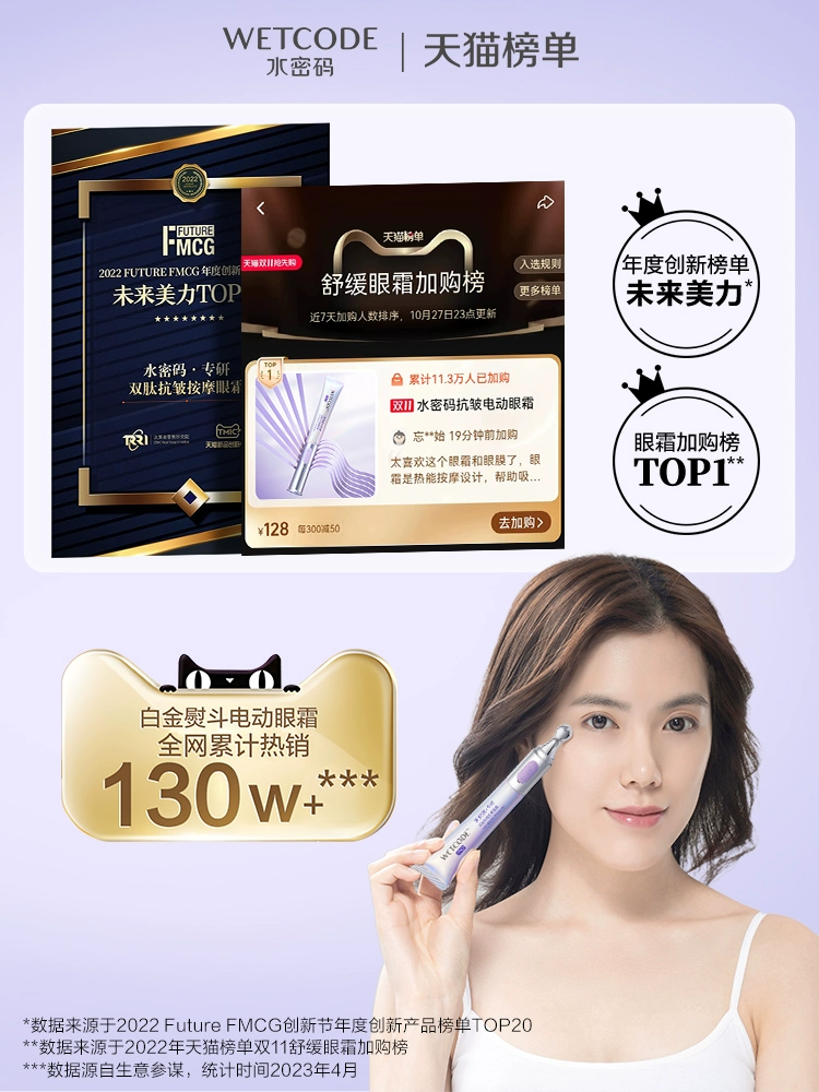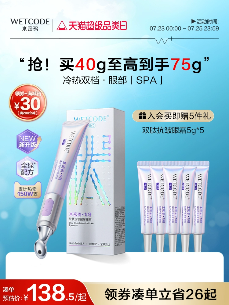 Water Code Electric Massage Eye Cream fades dark circles, fine lines, and eye bags, anti-wrinkle, tightens, moisturizes, and repairs the eye area.