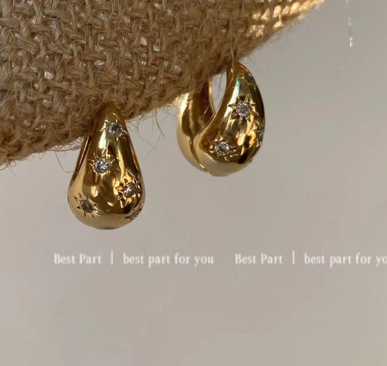 Water Drop Earrings 2023 New Arrival Trendy Metal Star Earrings Women’s Elegant Korean-style Light Luxury Simple High-end Sense Earrings
